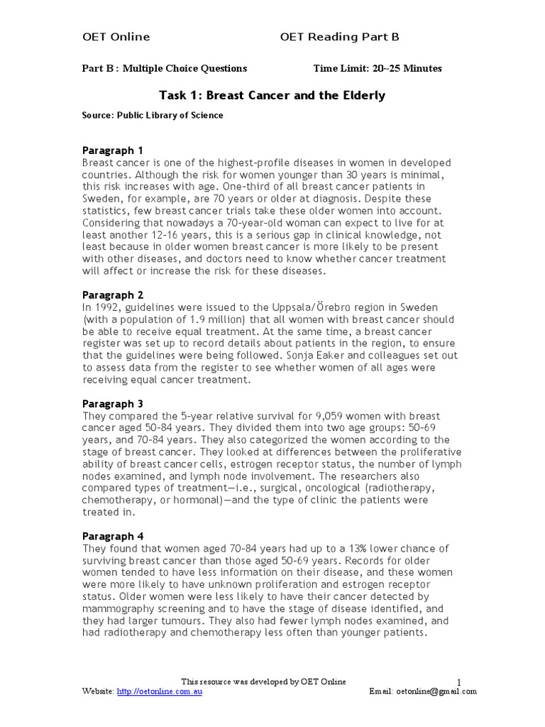 Oet Reading Breast Cancer Cancer