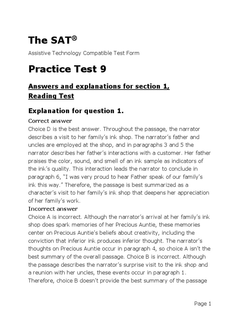 Sat Practice Test 9 Reading Answer Explanations Memory Evolution